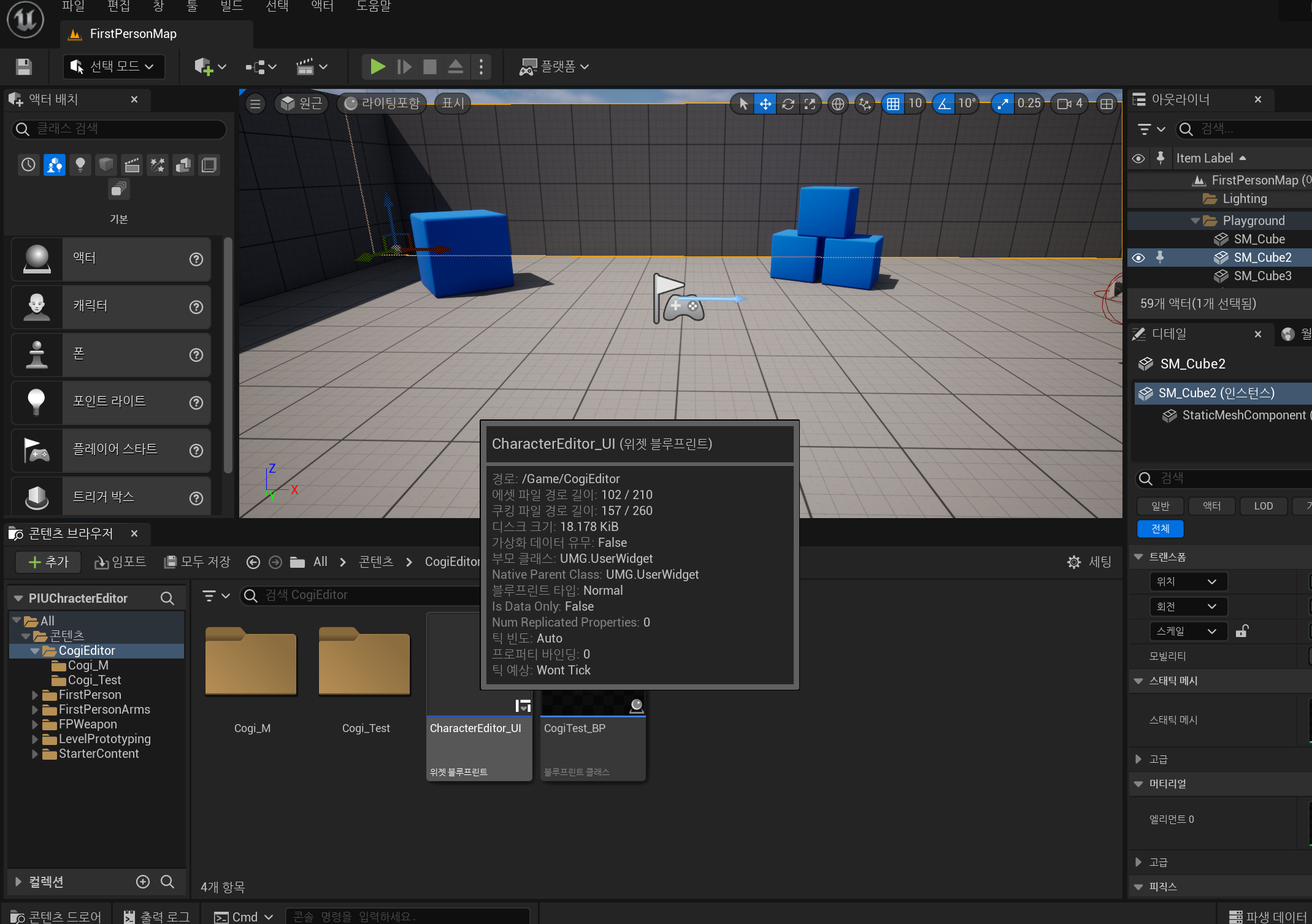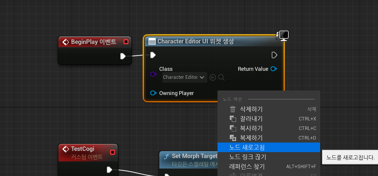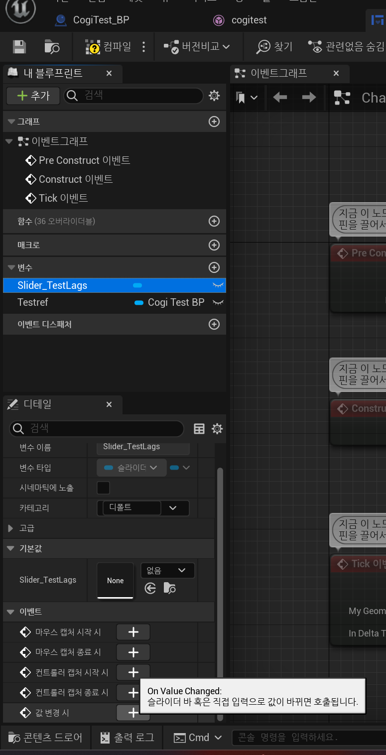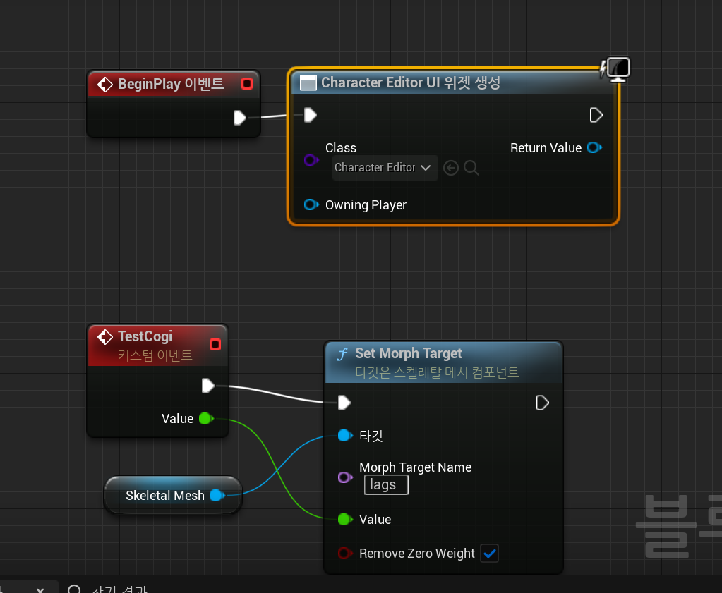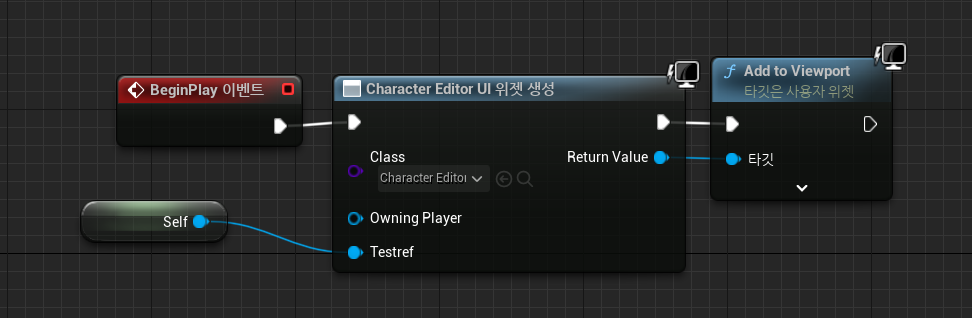 액터 블루프린트에서도 위잿과 연결하여 시작시 팝업 될 수 있도록 작성