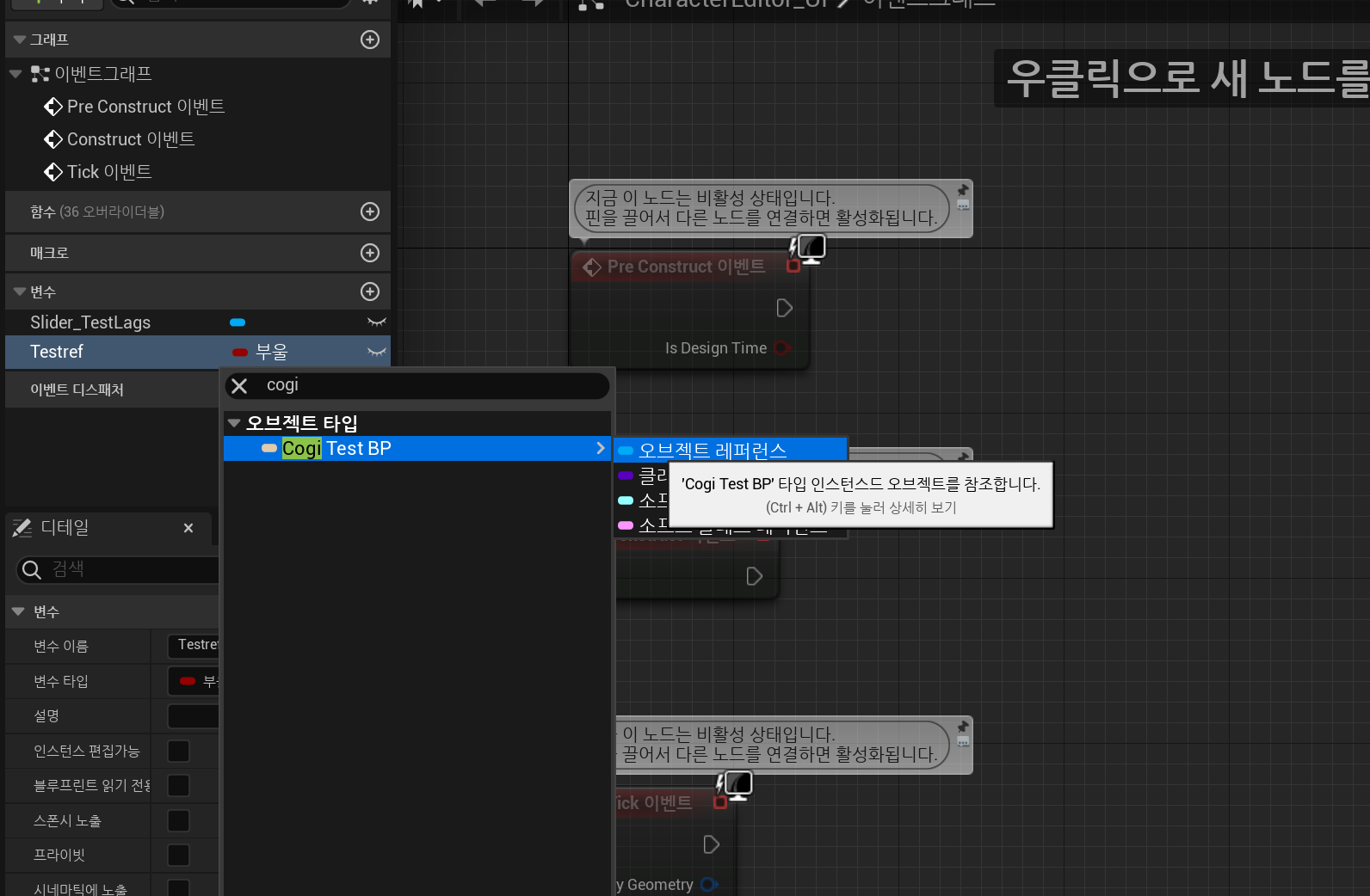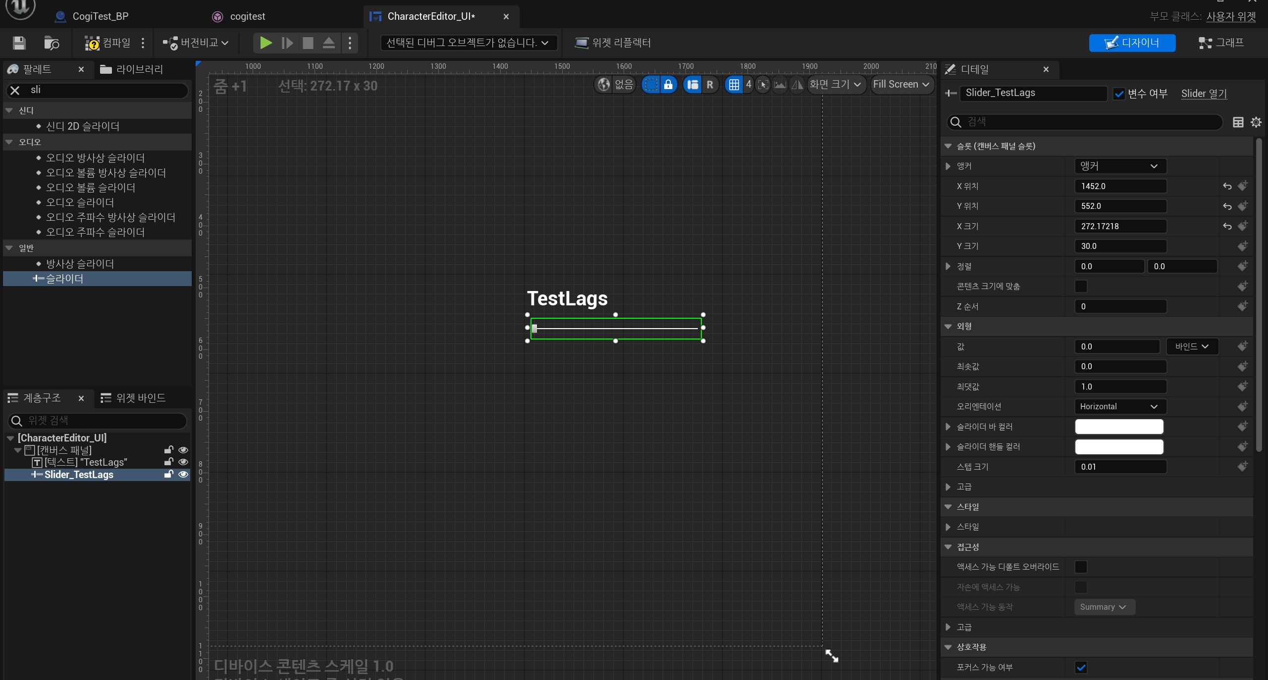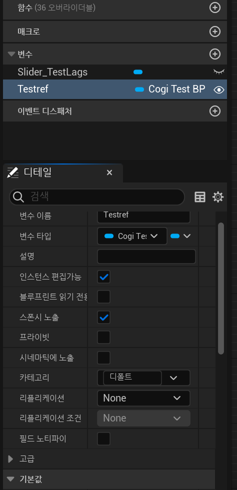 만들어둔 위젯 변수에서 인스턴스 편집가능과 스폰시 노출을 체크 후 컴파일 저장