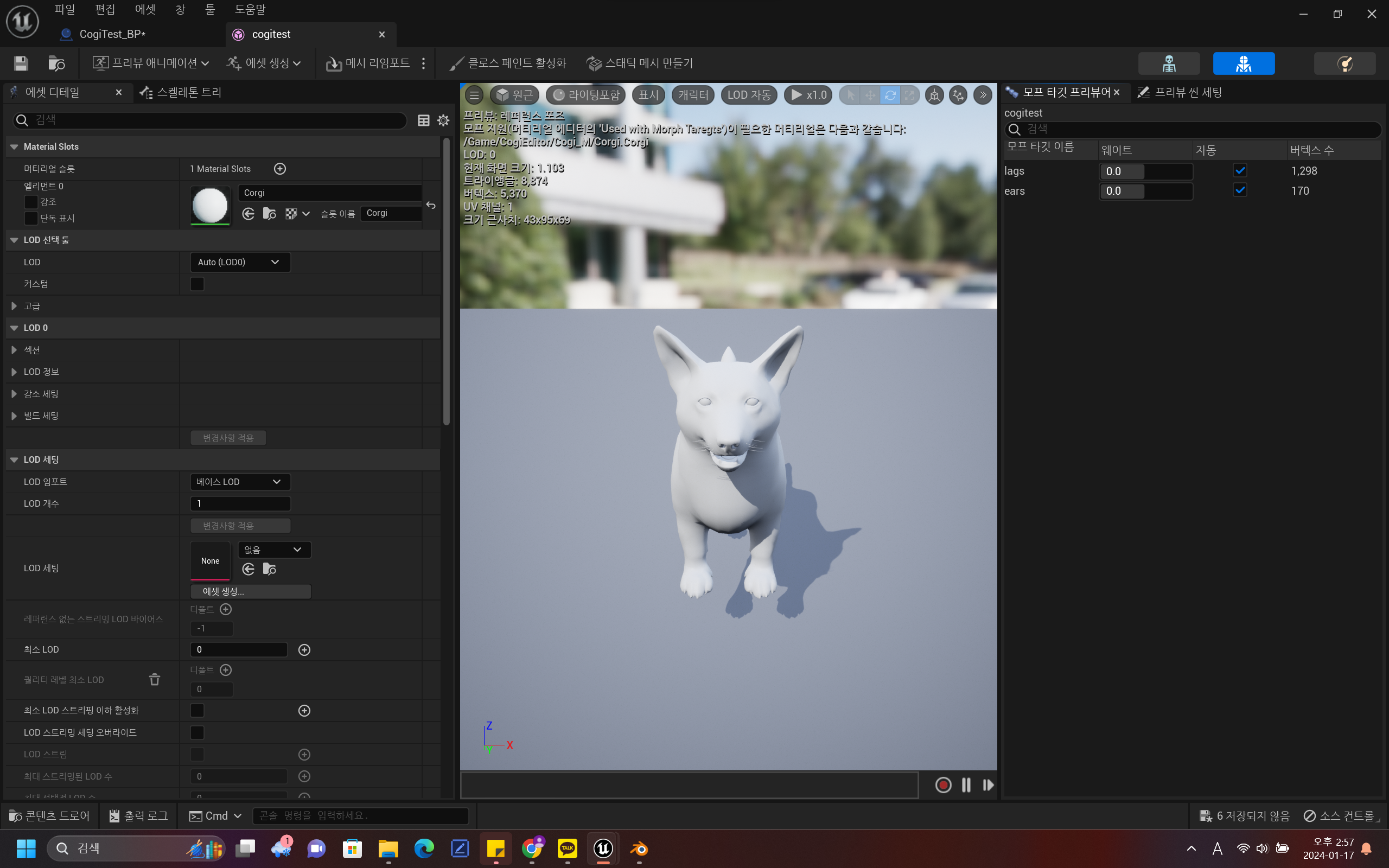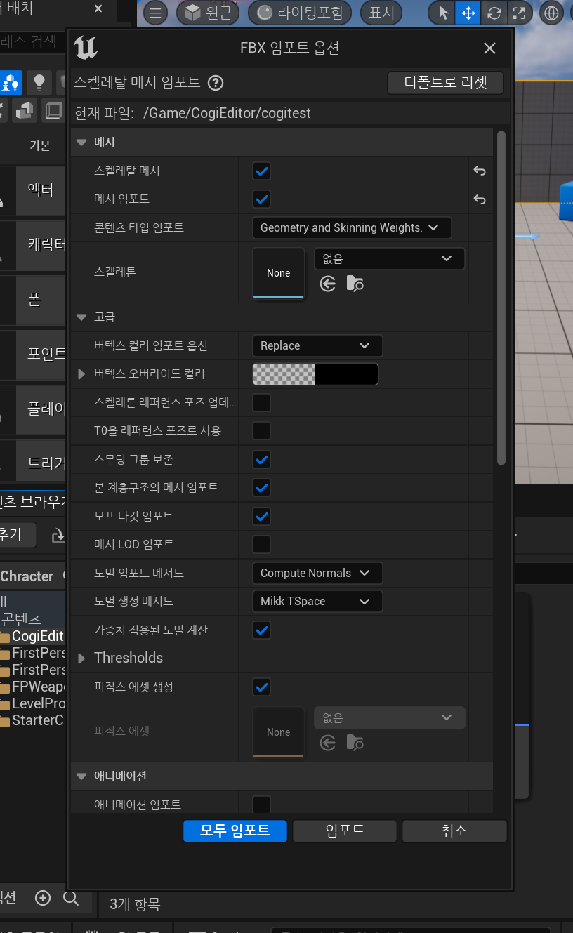 fbx로 익스포트 한 모델을 언리얼 엔진에 임포트