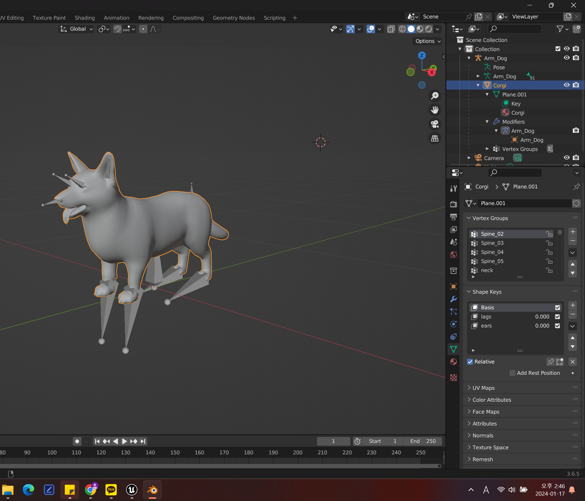 우측 매쉬 삼각형 모양을 클릭 후 shape keys에서 키 값을 클릭 후 에딧모드에서 변형할 모델을 생성하기