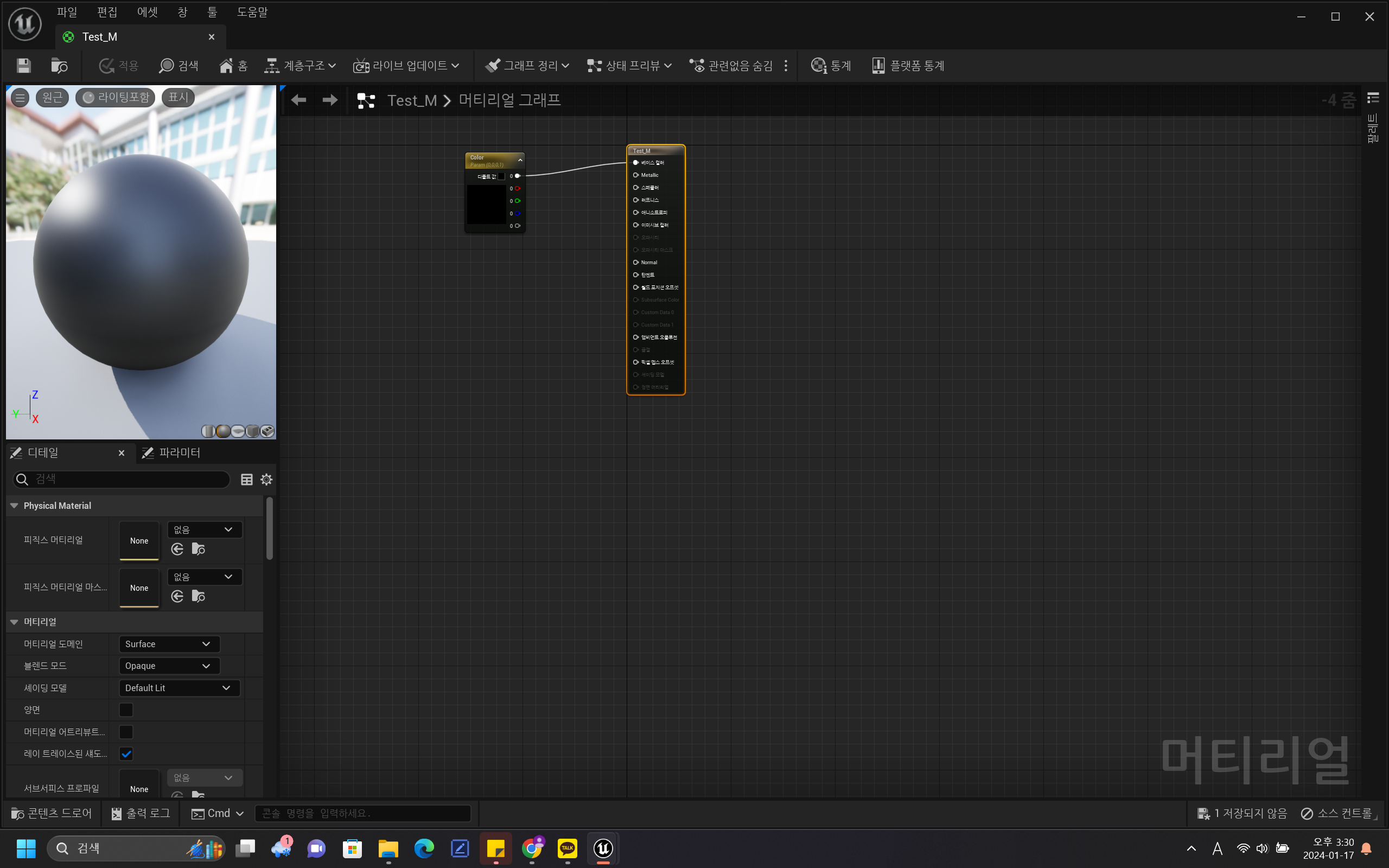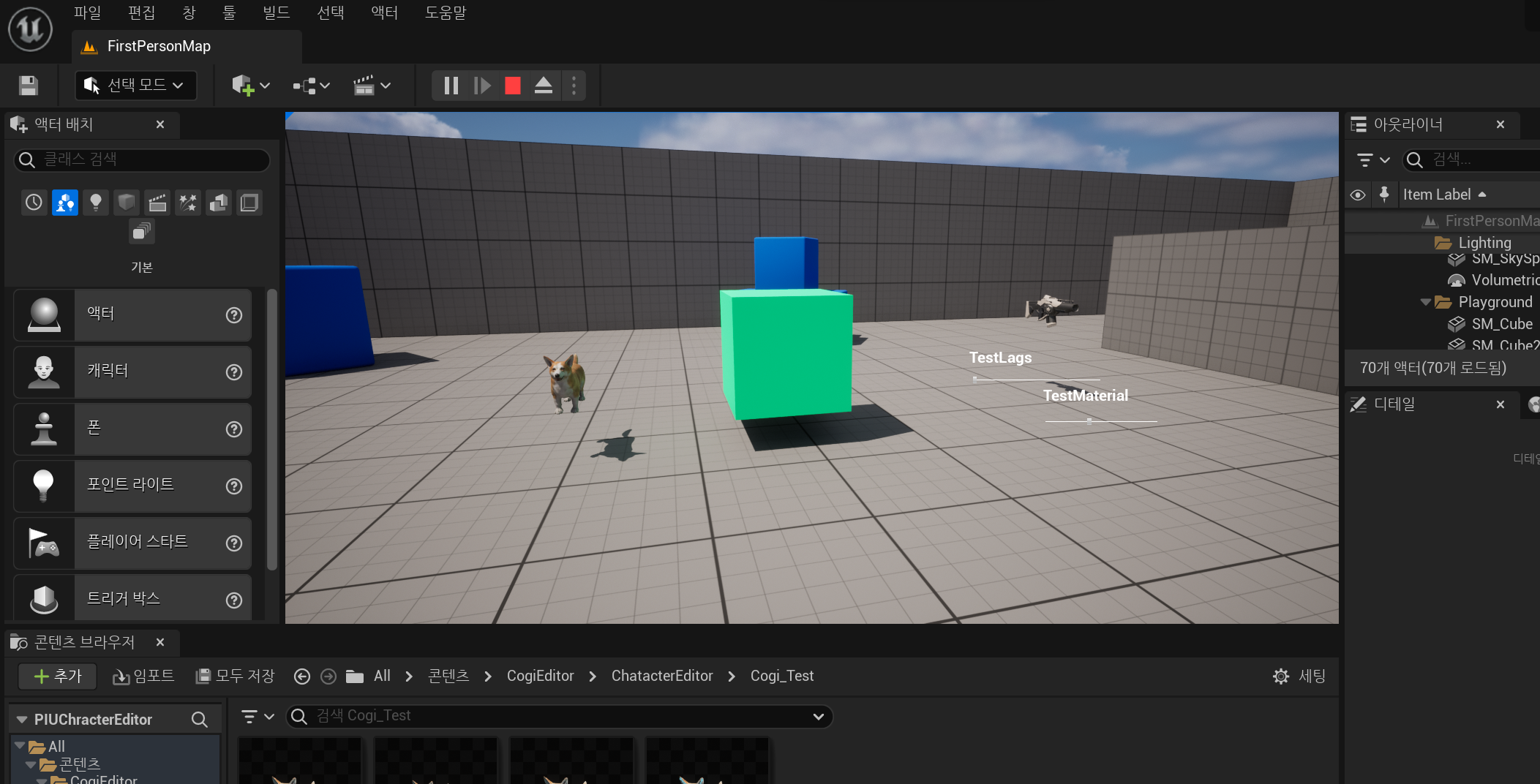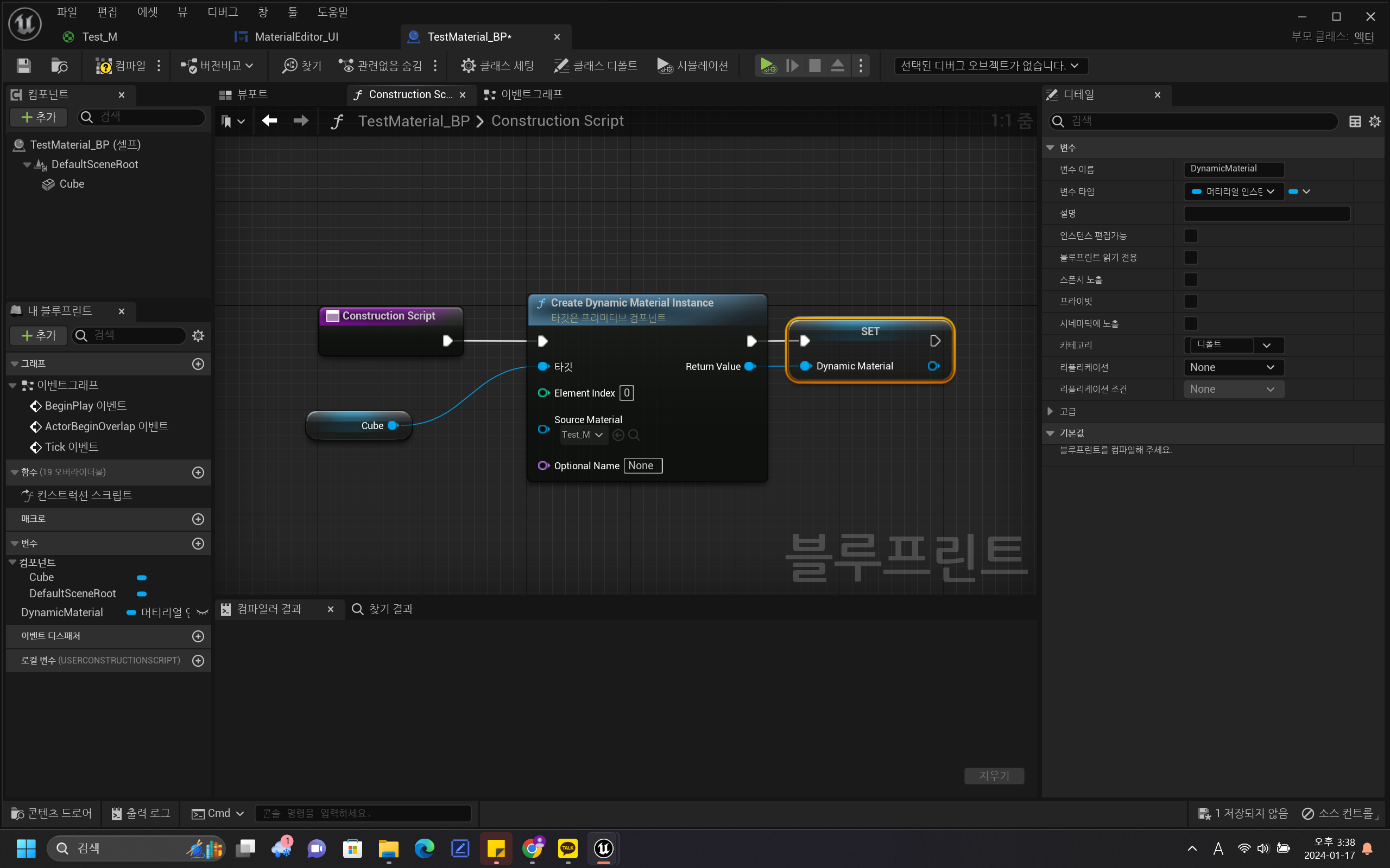 그림과 같이 블루프린트 작성 후 생성했던 메테리얼을 적용