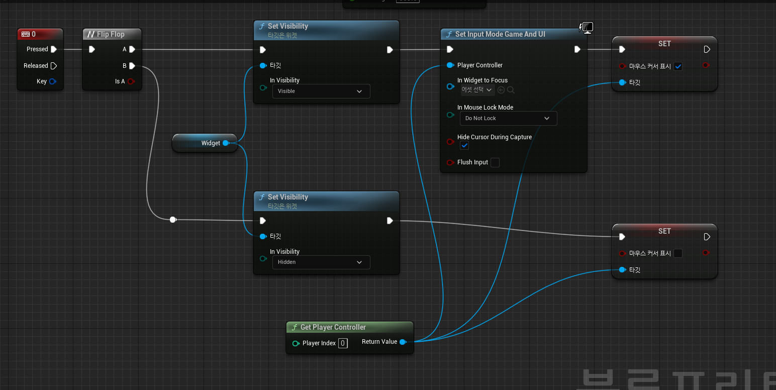 일정 키보드를 누르면 위젯과 마우스 커서가 생기게 하는 블루 프린트 이 과정이 싫다면