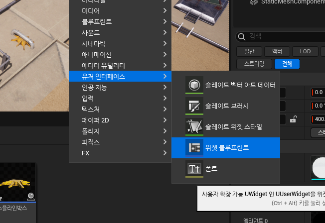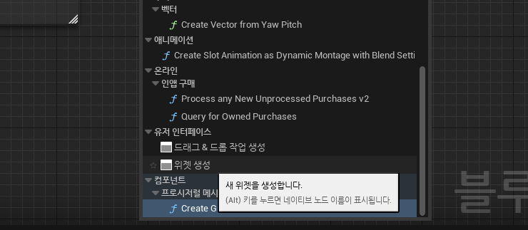 유저 인터페이스 > 위젯생성 검색어 : 크리에이트 위젯