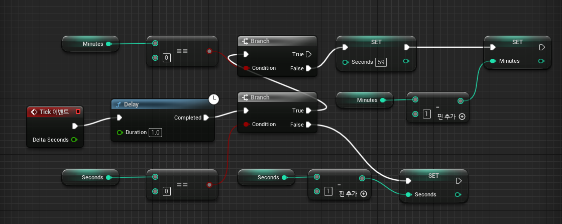 타이머의 전체 로직 남은 초가 0이 아닐경우 계속 -1 초가 0이 된다면 분을 -1하고 초는 59로 세팅 단 분이 0이 아닐경우에