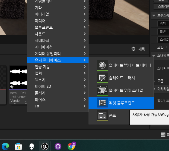 레벨 블루 프린트 그림과같이 작성 클래스는 만들어둔 ui로 설정