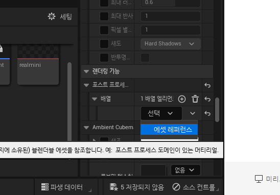 렌더링 기능 > 포스트 프로세스 > 배열 > 에셋레퍼런스 추가