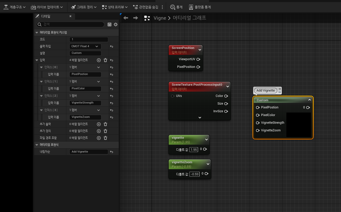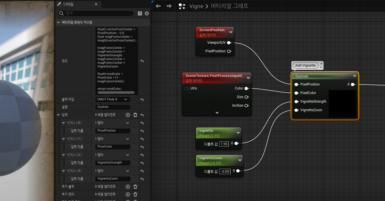 커스텀 블루프린트 생성 후 출력 타입과 엘리먼트를 추가 작성