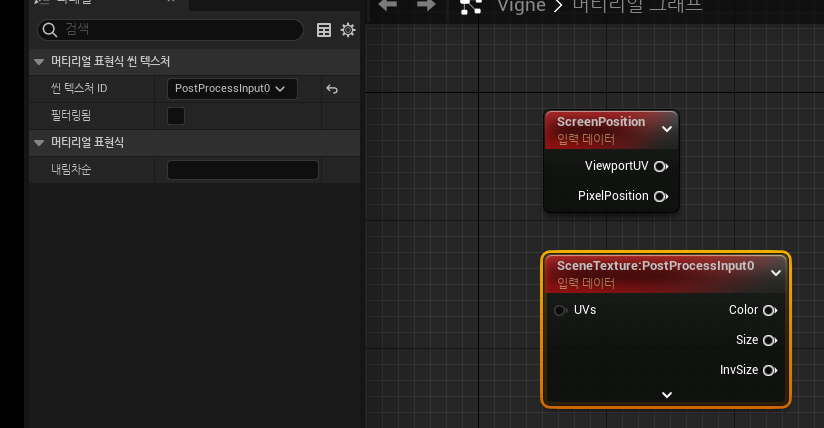그림과 같이 블루프린트 작성후 텍스쳐 아이디를 인풋 0으로 변경