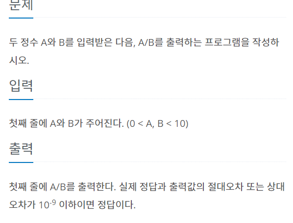백준 1008번 C++ 풀이 / C++ 소수점 자리 고정 출력