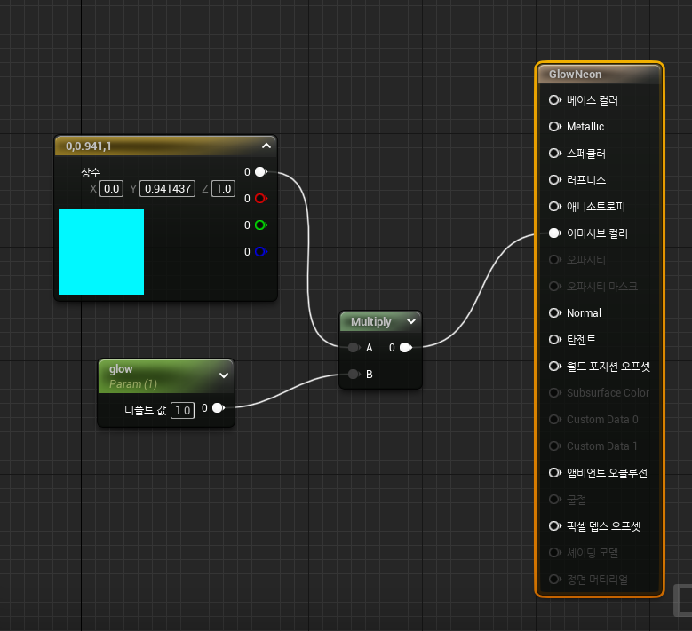 [언리얼 UE 5] 발광 메테리얼, 네온 만들기, 이미시브 메테리얼 제작, 언리얼 발광 재질 만들기