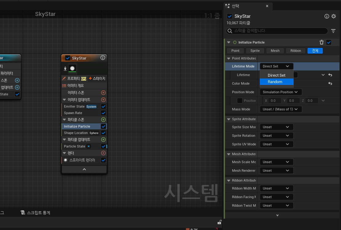 [언리얼 UE 5.1] 나이아가라 시스템, 파티클 만들기, 레벨 파티클 추가하기, 나이아가라 파티클 구현, 별 구현하기, 밤 하늘 제작하기