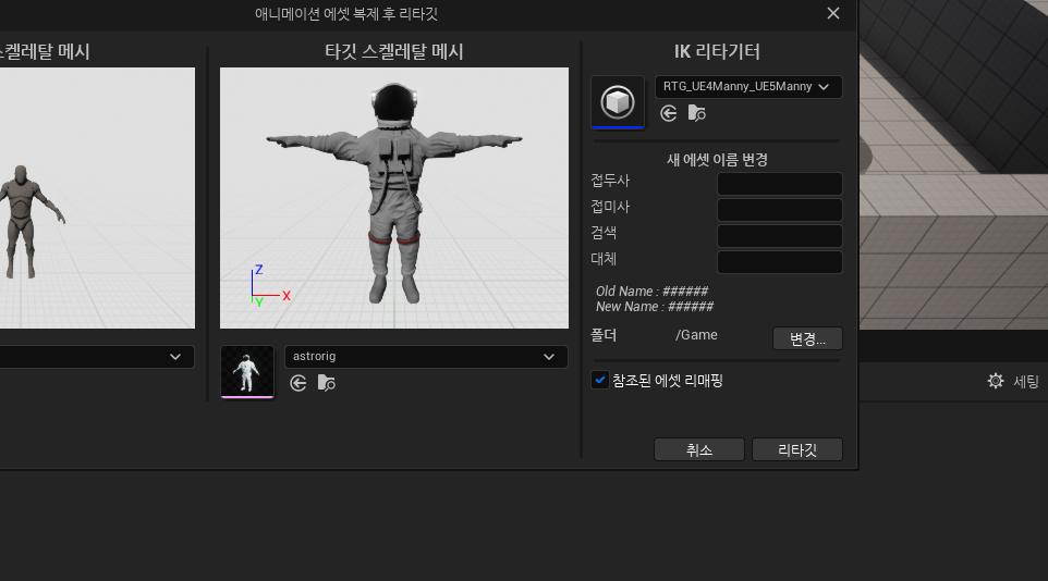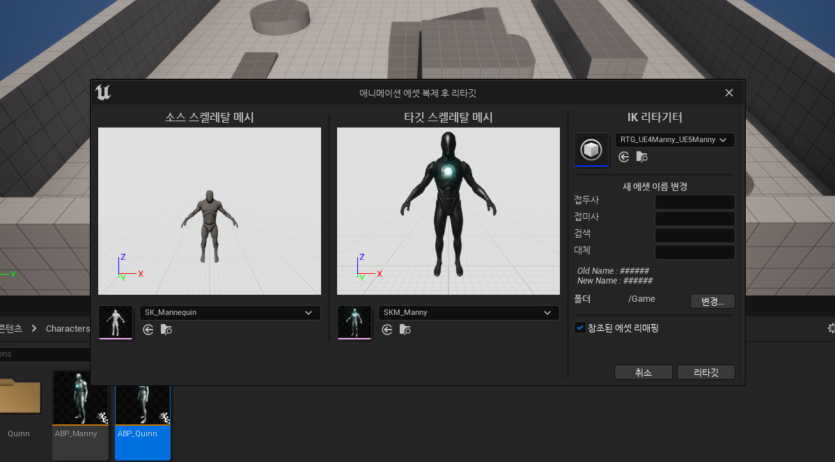 [언리얼 UE 5.1] 케릭터 변경 / 스켈레톤 메쉬 입히기 / 기본 애니메이션으로 케릭터 변경하기